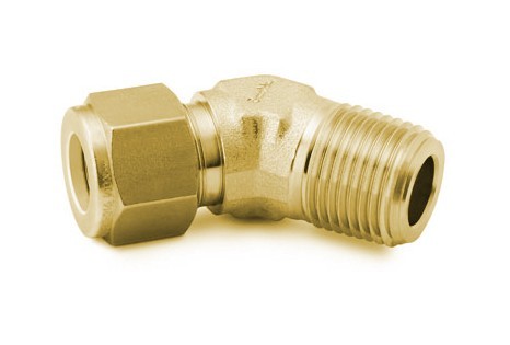 | 描述: 黄铜世伟洛克卡套管接头, 45°外螺纹弯头, 3/8 in. 卡套管外径 x 1/4 in. NPT外螺纹 | ||