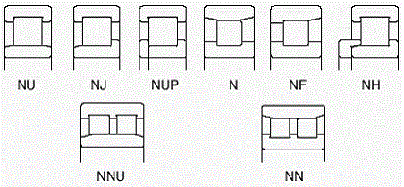 NU型、N型、NNU型及NN型适用于自由侧轴承。NJ型、NF型,可以承受一定程度的一个方向的轴向载荷,NH型及NUP型作为固定侧轴承使用。